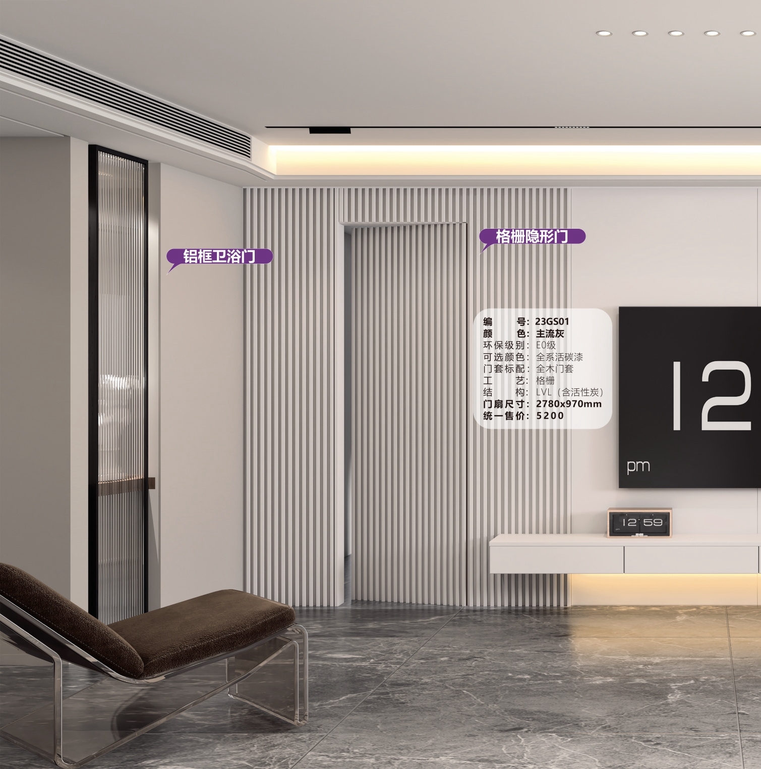 產(chǎn)品型號(hào):23GS01主流灰-格柵隱形門
